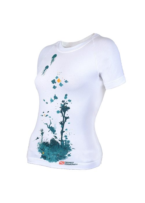 Wysokiej jakości top damski na cienkich ramiączkach. Zaprojektowany w ciekawym, sportowym stylu. Doskonale skrojony, świetnie się układa. Dodatek elastanu sprawia, że top idealnie dopasuje się do ciała i podkreśla damską sylwetkę. Wygodny i praktyczny, idealny na co dzień dla kobiet, dla których nurkowanie to pasja i styl życia.